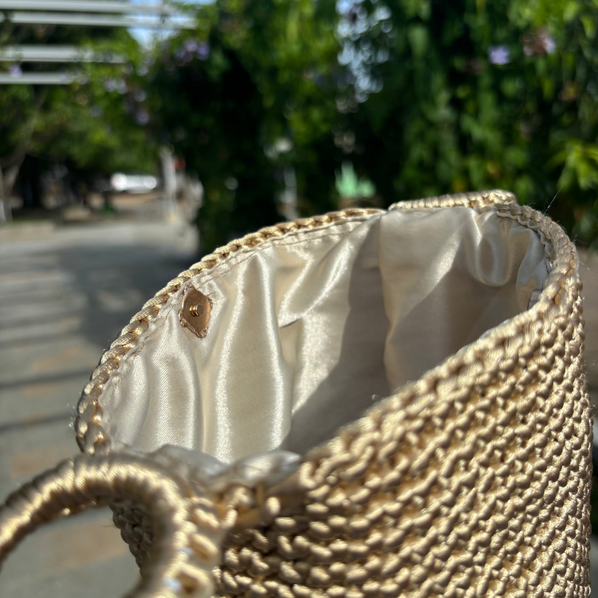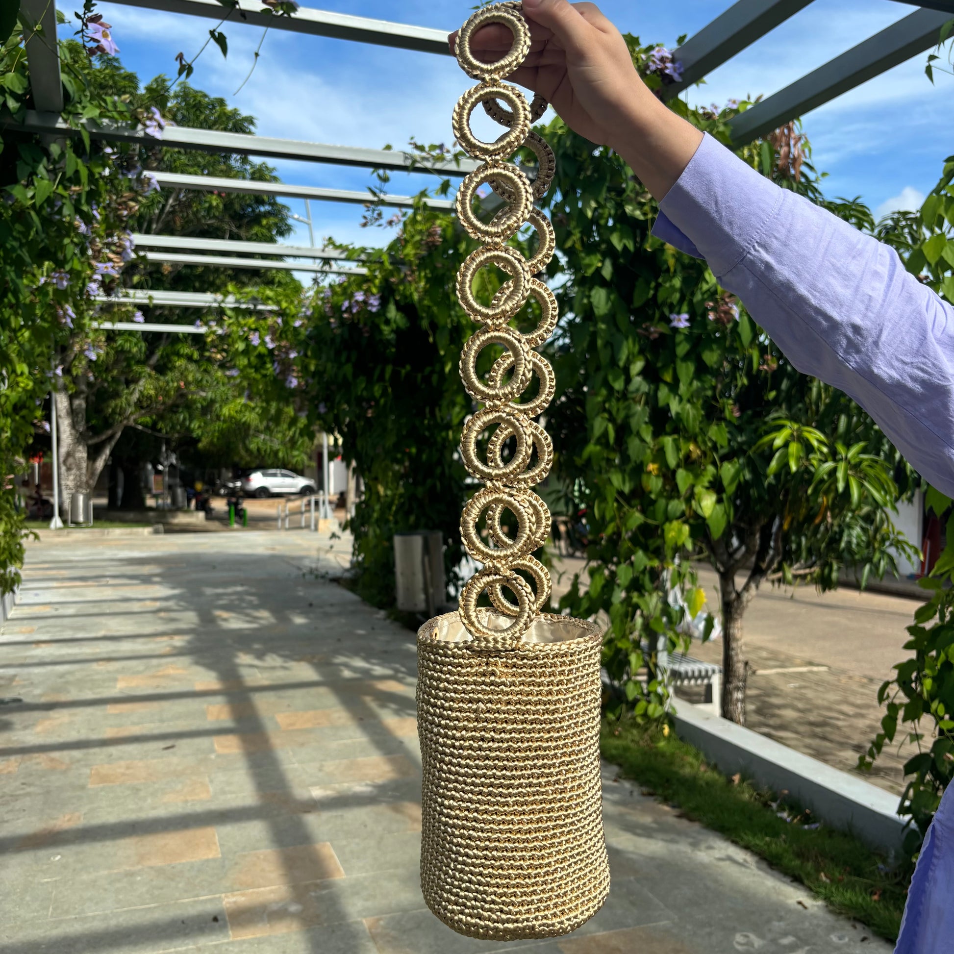 Una mochila hecha a mano con hilo de seda. Una pieza única que representa la fusión perfecta de tradición y modernidad.