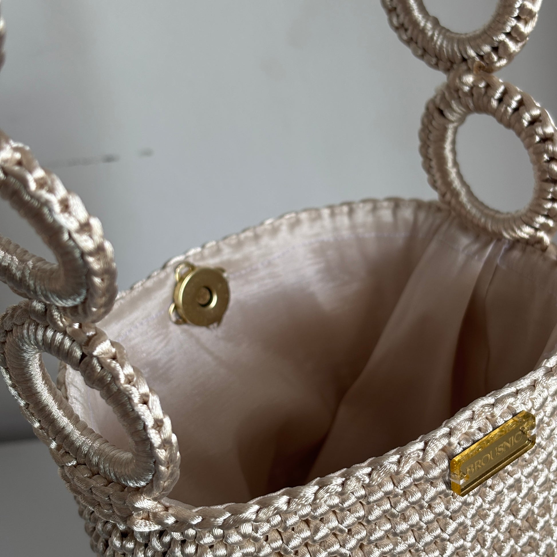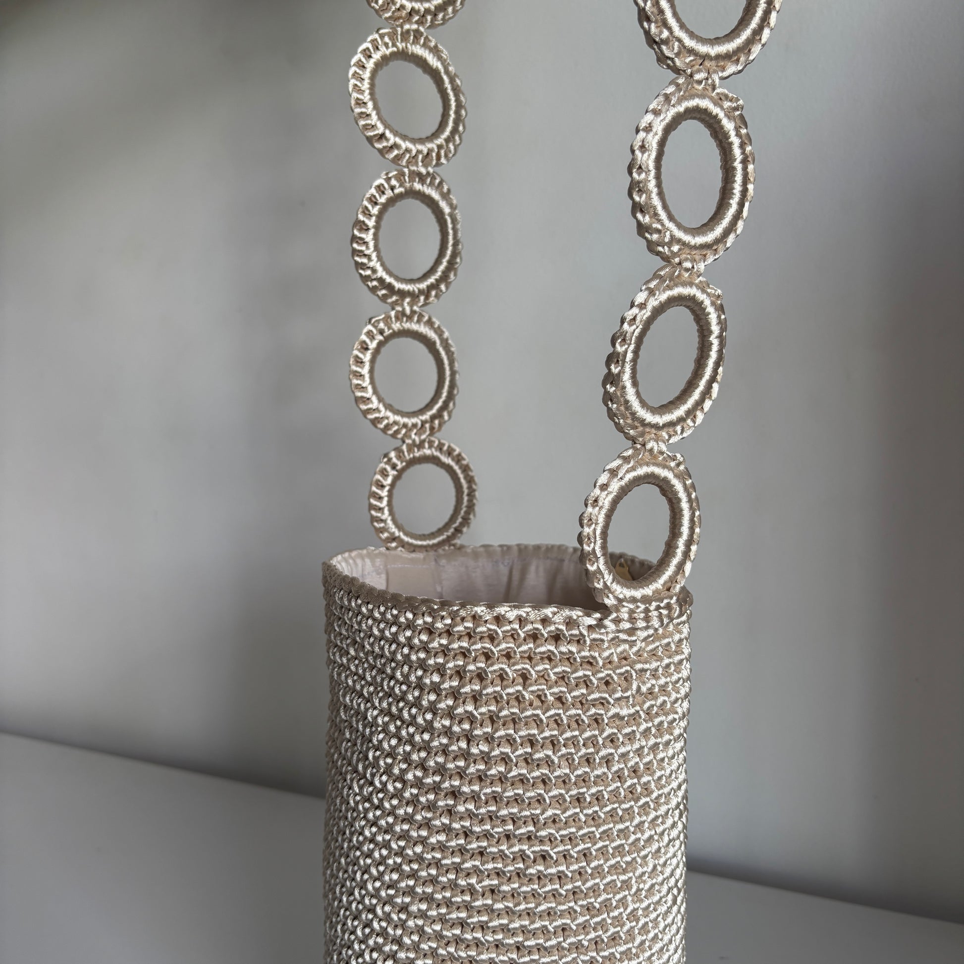 Una mochila hecha a mano con hilo de seda. Una pieza única que representa la fusión perfecta de tradición y modernidad.
