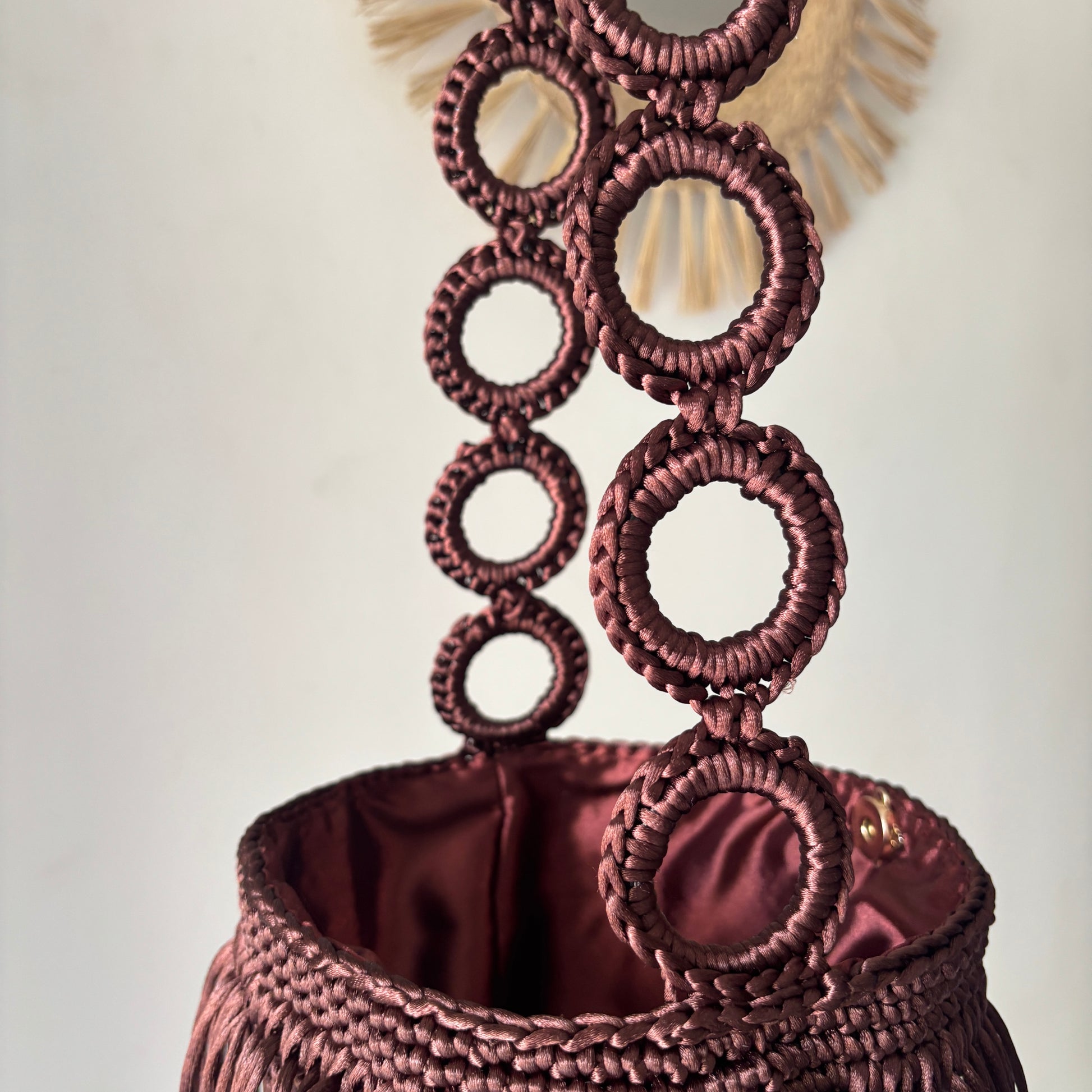 Una mochila hecha a mano con hilo de seda. Una pieza única que representa la fusión perfecta de tradición y modernidad.