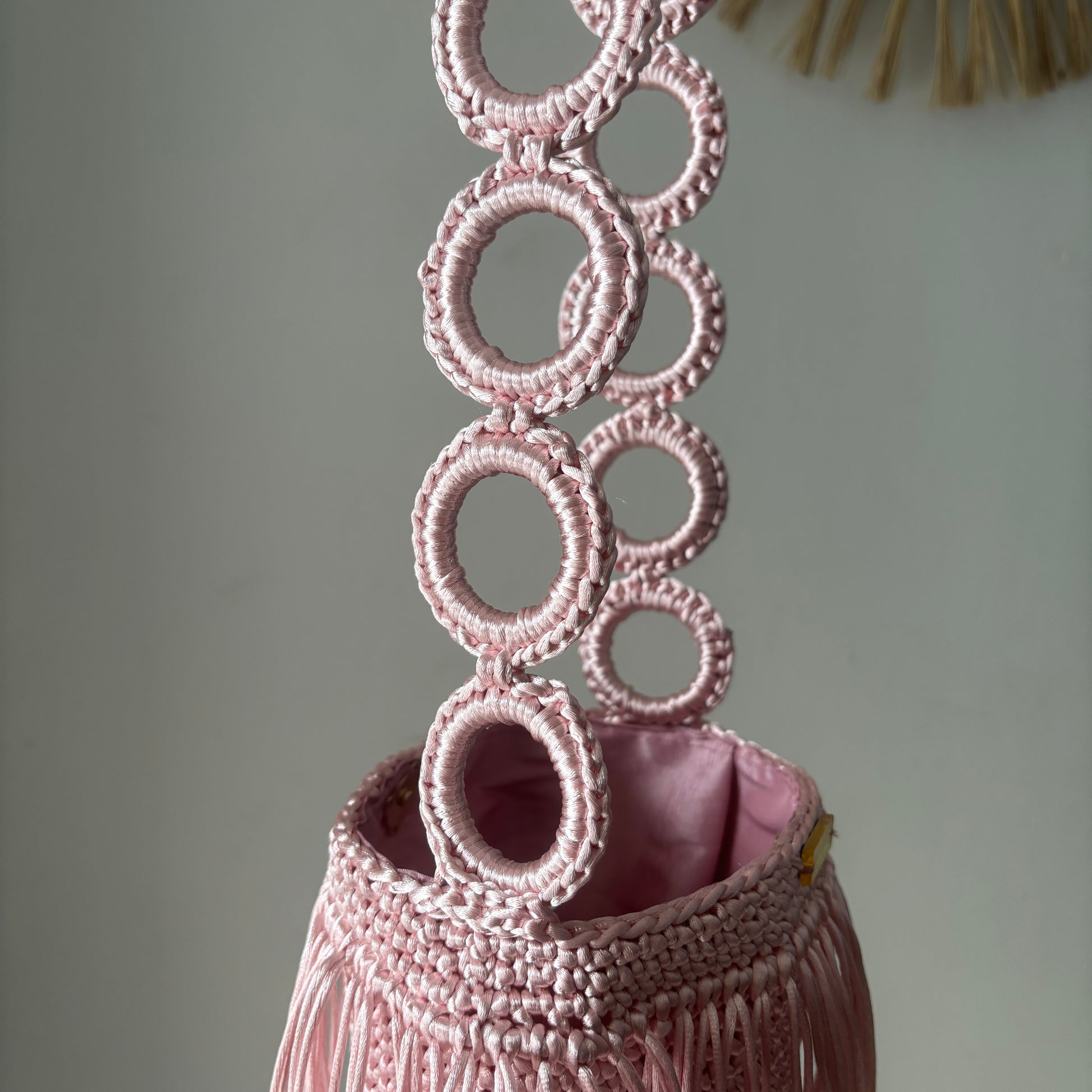 Una mochila hecha a mano con hilo de seda. Una pieza única que representa la fusión perfecta de tradición y modernidad.