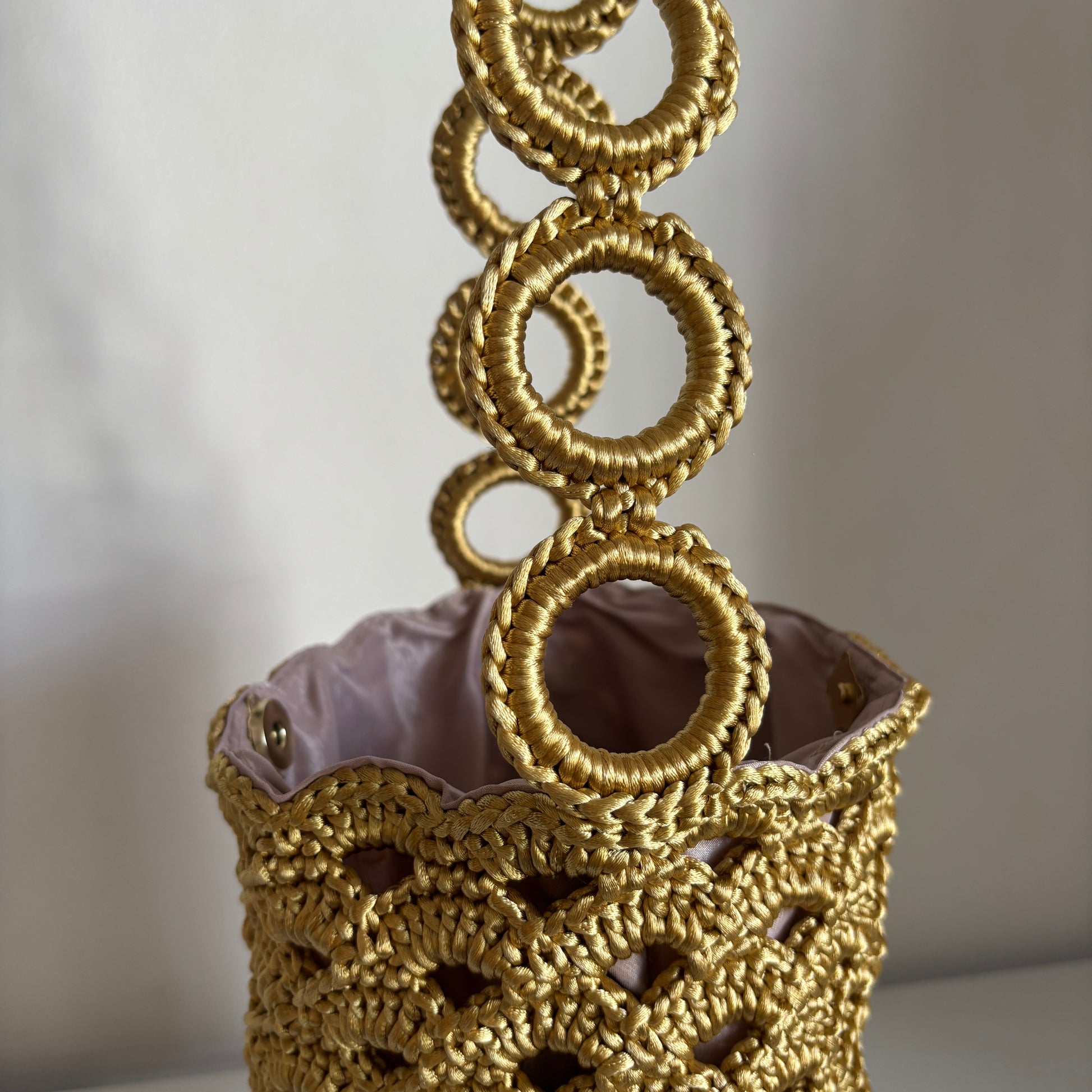 Una mochila hecha a mano con hilo de seda. Una pieza única que representa la fusión perfecta de tradición y modernidad.