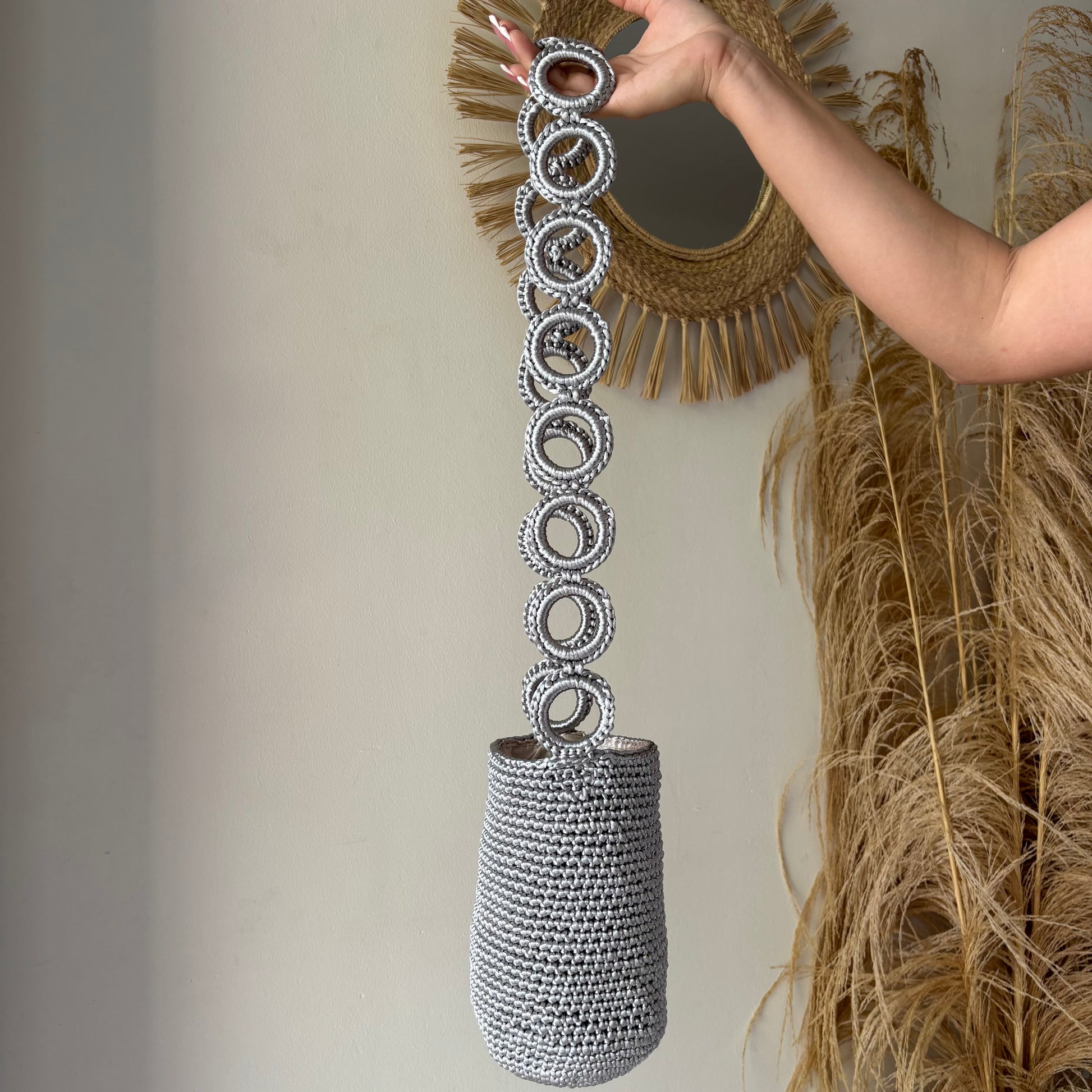 Una mochila hecha a mano con hilo de seda. Una pieza única que representa la fusión perfecta de tradición y modernidad.