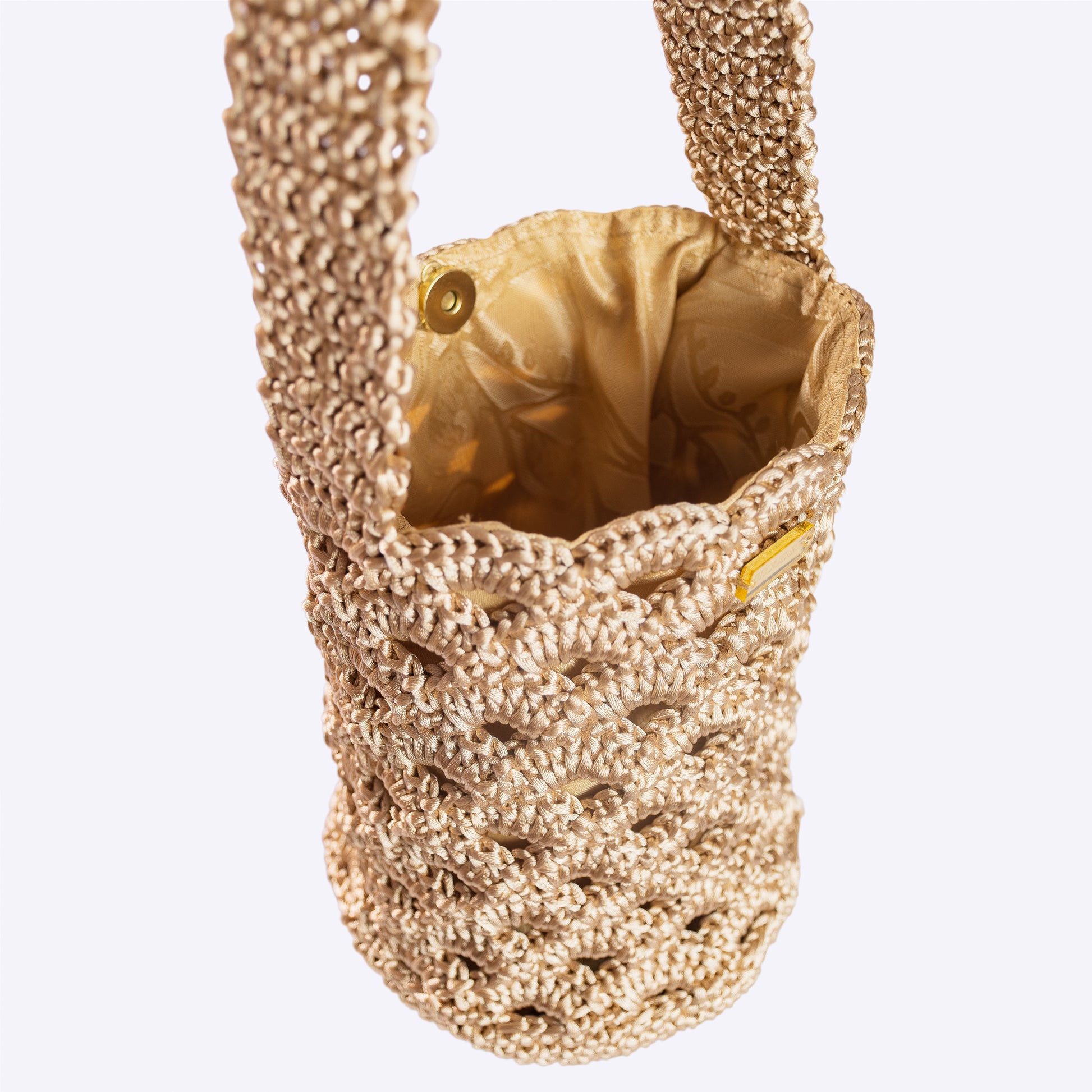 Una mochila hecha a mano con hilo de seda. Una pieza única que representa la fusión perfecta de tradición y modernidad.